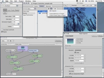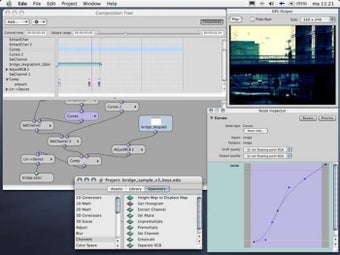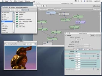 Las operaciones están representadas a través de nodos gráficos, cada uno con sus valores y parámetros definidos. A cada nodo le corresponde una o varías entradas y salidas. Modificar las conexiones es muy fácil con el ratón. Edo nos permitirá animar imágenes en 3d y crear secuencias de vídeo en tiempo real.